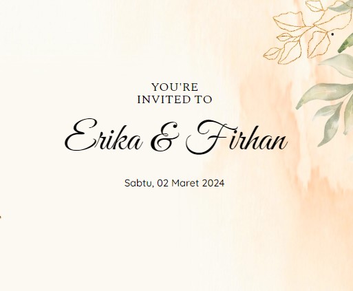 YOU’REINVITED TO Erika & Firhan Sabtu, 02 Maret 2024 Couple Assalamu’alaikum warahmatullahi wabarakatuh Dengan memohon rahmat dan ridho Allah SWT, mohon do’a restu Bapak/Ibu/Saudara dalam rangka melangsungkan pernikahan putra putri kami : Erika Sri Nursafitri Putri Bungsu dari Bapak Unang Sukandi& Ibu Empat Patimah (Almh) & Firhan Ardiansyah S.Pd Putra Pertama dari Bapak Agus Dudung […]