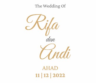 The Wedding Of Rifa dan Andi AHAD 11 | 12 | 2022 Kepada Yth. Bapak/Ibu/Saudara/i Di Tempat Assalamu’alaikum Wr. Wb. Dengan memohon rahmat dan ridho Allah Subhanahu Wa Ta’ala, insyaaAllah kami akan menyelenggarakan acara pernikahan : dr. Syarifah Ayu Rahmanisa Putri Pertama dari Bapak Zainal Abidin, S.Sos & Ibu (Almh.) Wahida Rasyid, S.E & Hj. […]