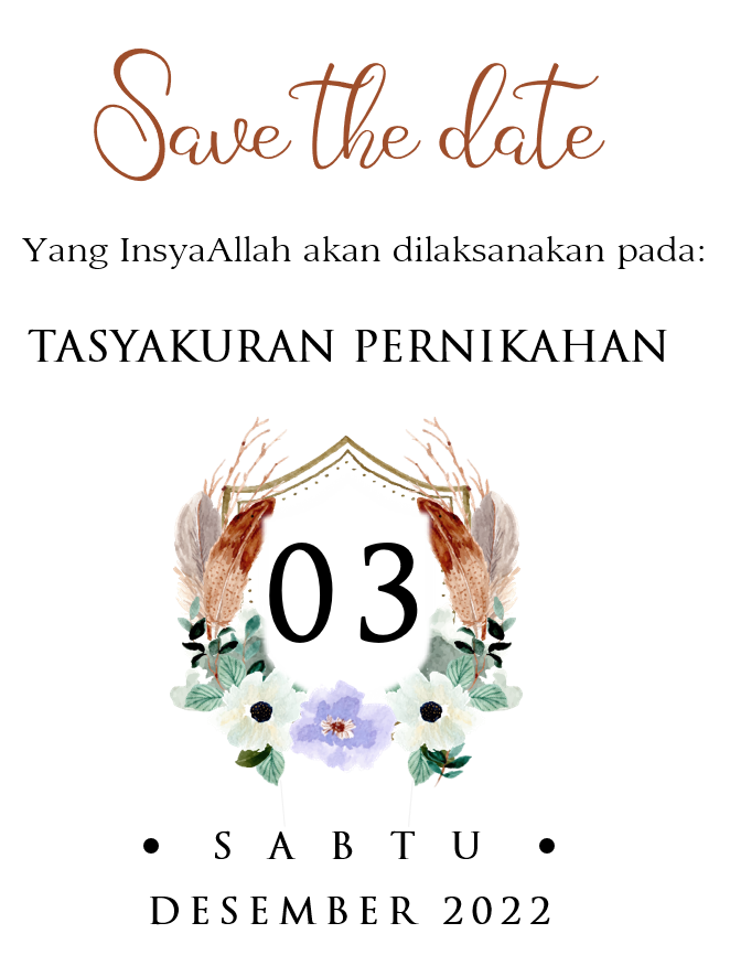 Dengan memohon rahmat dan ridho Allah SWT, mohon do'a restu Bapak/Ibu/Saudara dalam rangka melangsungkan Tasyakuran Pernikahan putra putri kami :