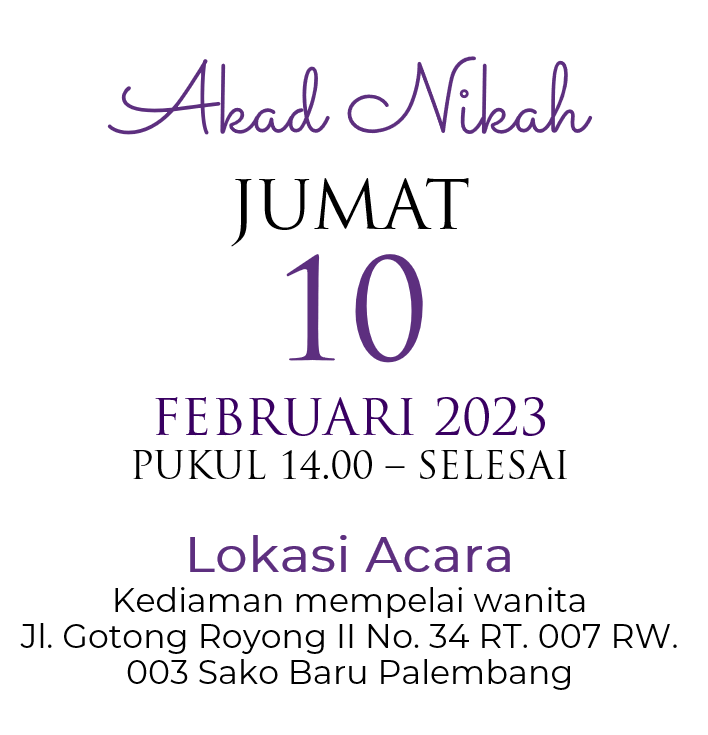 Dengan memohon rahmat dan ridho Allah SWT, mohon do'a restu Bapak/Ibu/Saudara dalam rangka melangsungkan pernikahan putra putri kami :